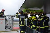 Weitere Schwerpunkte bildeten die Rettung eingeklemmter Personen nach VerkehrsunfÀllen unter Einsatz von hydraulischem RettungsgerÀt sowie die Versorgung mehrerer verletzter Personen nach einem simulierten Unfall in einem Batterielager.